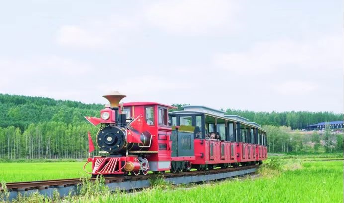 走在稻田里的木栈道上,近距离感受这片真实的田野。放眼望去,无遮无碍,心境也顿时开阔起来。清凉的微风划过脸颊,田野的清香不时随着呼吸涌入肺腑。坐上稻田里复古的蒸汽小火车,是另一番体验。穿行于稻田的怀抱,这样的畅游,是自在的,舒展的,放松的,还有人竟尖叫起来,喊声是忘情的,自然的,就像见到久违的亲人,喊声就是拥抱。