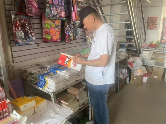 检查组深入镇内书店、文具店等场所,重点检查各经营场所是否在显著位置悬挂经营许可,是否超范围经营中小学教材,是否销售存在涉政、淫秽、暴力、血腥等内容的书籍、文具、学生用品等,是否有售卖盗版类书籍以及非法书籍的现象,并告知经营户如发现传播淫秽物品的现象要及时提供线索。经走访排查镇内2家文化用品商店,暂未发现反动、淫秽、迷信和国家明令禁止的其他内容的书籍。