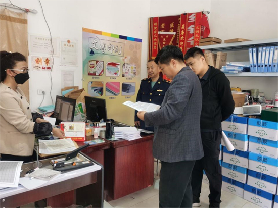 检查人员先后深入文博、金龙等4家印刷企业,重点检查了印刷企业承印验证、承印登记、印刷品保管、印刷品交付和残次品销毁等五项管理制度落实情况,检查是否存在侵犯版权、商标权、超范围经营和印制非法印刷品等违法违规经营行为。检查组还对龙斌美术、赢文化等外包装印刷企业进行检查,查看是否存在未按规定印刷广告宣传品及容易对消费者产生误导的广告宣传品。同时检查人员还向经营业主宣传讲解《印刷业管理条例》《内部资料管理办法》等法律法规,要求经营业主增强法律意识,合法合规经营。