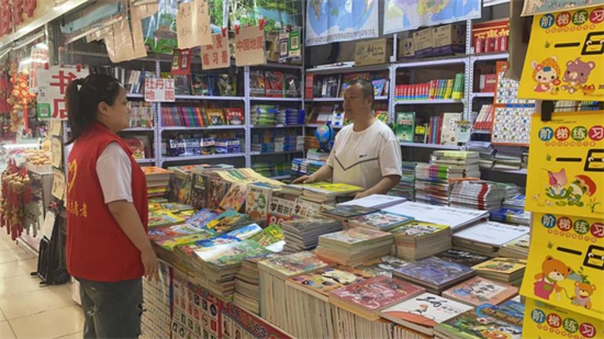 检查组对辖区出版物零售场所、校园周边文化市场、重点区域进行了全覆盖检查,查看经营单位的《出版物经营许可证》及《营业许可证》销售范围,是否存在销售盗版少儿读物和教辅材料以及内容不健康图书现象,同时对经营者进行“扫黄打非”工作宣传,引导市场主体增强责任意识,自觉依法规范经营。同时,组织新时代文明实践站志愿者深入居民小区向居民发放宣传单,并结合未成年人“护苗”专项行动实施方案和要求,向广大群众讲解什么是“扫黄打非”,引导青少年健康上网,绿色读书,提高居民群认识,加强鉴别和打击能力,自觉抵制有害出版物和信息。