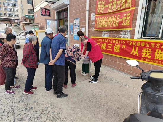 为贯彻落实《健康中国行动2019——2030》《全民健康生活方式行动方案2017——2025》有关要求,深入推进实施以“三减三健”为主题的全民健康生活方式行动,进一步传播和普及健康知识,林口县城东社区组织社区卫生服务中心于 9月4日下午组织志愿者到人员较多的北山老年公寓开展了以“三减三健”为主题的宣传活动。