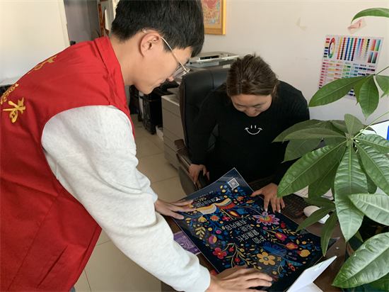 随后,文明实践志愿者们深入辖区内打印社查看是否存在非法出版物、盗版书刊及国家明令禁止的印刷品、音像制品。同时,对经营者进行相关法律法规宣讲,普及“扫黄打非”的意义及如何识别涉“黄”涉“非”制品知识,引导经营者自觉做到守法经营、文明经营、安全经营,倡导群众主动参与“扫黄打非”活动中来,共同净化文化环境的良好氛围。