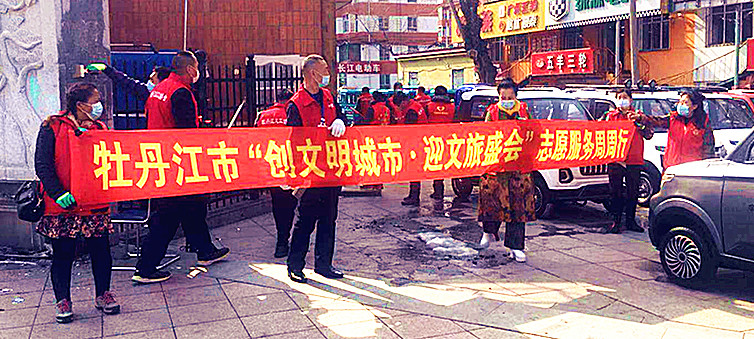 “创文明城市·迎文旅盛会”志愿服务周周行活动解决了居民群众最关心、最直接、最现实的小区环境卫生问题。针对文明养成中的“差”,在街头广场向广大市民群众发放《牡丹江市民文明手册》和“创建第七届全国文明城市 迎接第四届全省旅发大会”倡议书;针对环境卫生中的“脏”,清理背街小巷中的垃圾死角;针对市容秩序中的“乱”,开展交通秩序文明引导,清理公交站亭、街头建筑物立面上的小广告;针对街道社区管理中的“弱”,清理老旧小区内的小广告和宣传引导居民共建文明小区,以此影响和带动全社会共建美好家园,共创文明城市,共迎文旅大会。