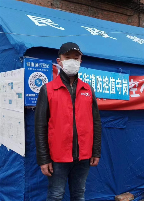 自新冠肺炎疫情防控以来,他始终坚守在疫情防控第一线,不畏风雪,不胜不休。他认领任务不折不扣,每项工作都冲在最前,他长期“占领”计步软件封面,拖着受伤的腿拄着双拐跑遍了社区的每一个角落。为严格落实疫情防控工作要求,他全面盘活各类下沉资源,统筹各方工作力量,共组建防疫网格38个、成立6组小区巡逻队、10支志愿服务队,有效解决辖区居民生活保障和安全问题。在抗击疫情最为重要的160多天里,他直接住在社区24小时待命,没有休息过一天,所有防疫工作他都参与其中。为防止疫情传播,他又默默背起消毒器材,对辖区楼道、垃圾桶进行全覆盖消毒,用耐心劝导居民配合管控,消除居民恐慌,寒冬中的身姿与当年在部队时一样挺拔,不曾退缩。