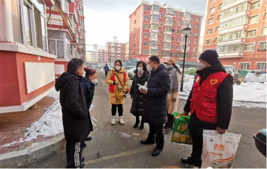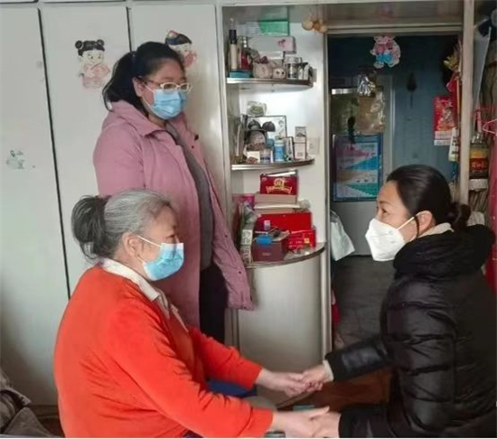 市妇联志愿服务队走访慰问结对共建社区——利民社区的困难妇女,为他们送去了价值千余元的防疫药品、口罩以及大米、白面、豆油等生活物资,与贫困妇女交谈,询问家庭生活、家人健康状况,鼓励她们树立生活信心,勇敢面对困难、克服困难,让她们在寒冬中感受到党和政府的亲切关怀。