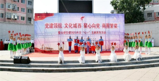 6月28日,沿江街道党工委在阿里郎广场举办“礼赞新时代 奋进新征程”七一表彰大会暨礼赞新时代文艺汇演志愿服务活动。用最饱满、最真挚的情感,讴歌党的丰功伟绩,为庆祝中国共产党成立102周年献礼。整场演出主题鲜明,内容丰富,随着激昂的音乐响起,蓝之梦舞蹈团的开场舞《春到雪山》拉开演出帷幕,《红歌联唱》、舞蹈《再唱山歌给党听》等节目回顾了党的光辉历程、表达了对党和祖国的无限热爱,最后演出在大合唱《没有共产党就没有新中国》中落下了帷幕,演员们用深情的歌声、优美的舞姿、动人的旋律为现场观众呈现出了一场精彩的艺术盛宴。