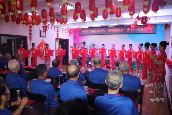 6月27日,火炬街道日照社区联合牡丹江离退休办公室开展“畅想新时代 颂歌献给党”庆“七一”文艺联欢志愿服务活动。活动在全体党员重温入党誓词的氛围中拉开帷幕,共演出了大合唱、诗朗诵、管乐联奏、演唱、舞蹈、模特表演等十多个精彩的节目。演员分别来自原分局机关的老干部和老年大学学员以及办公室在职工作人员共70余人参加。演出过程中,获得了现场观众的一致好评。最后,在合唱《没有共产党就没有新中国》的歌声中落下了帷幕。此次活动让老同志们意犹未尽,纷纷表示,既看了一场精彩的节目,又接受了一次激动人心的红色教育,祝愿祖国更加繁荣昌盛!