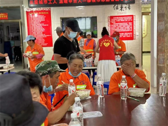活动现场,志愿者们将提前准备好的饺子、矿泉水、一次性筷子、蘸料等分发给环卫工人,同时感谢他们对城市的付出,向环卫工人们传达社会各界的关心关爱。